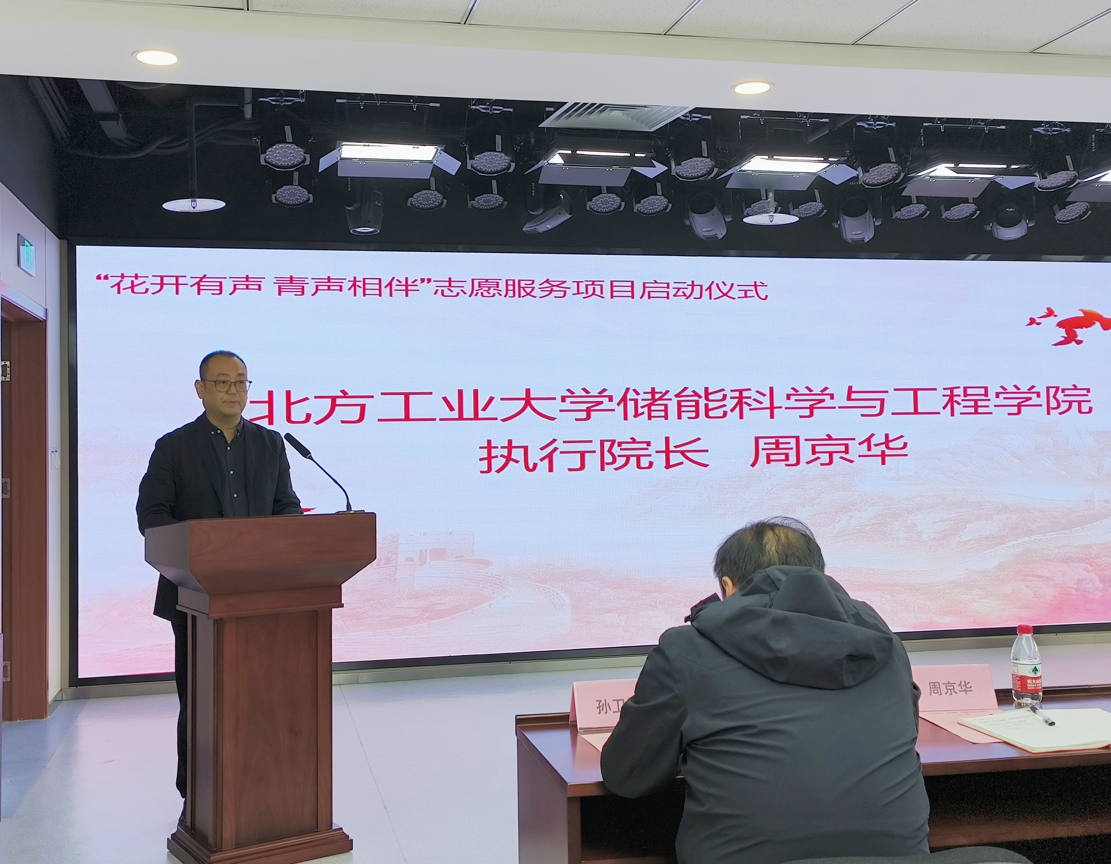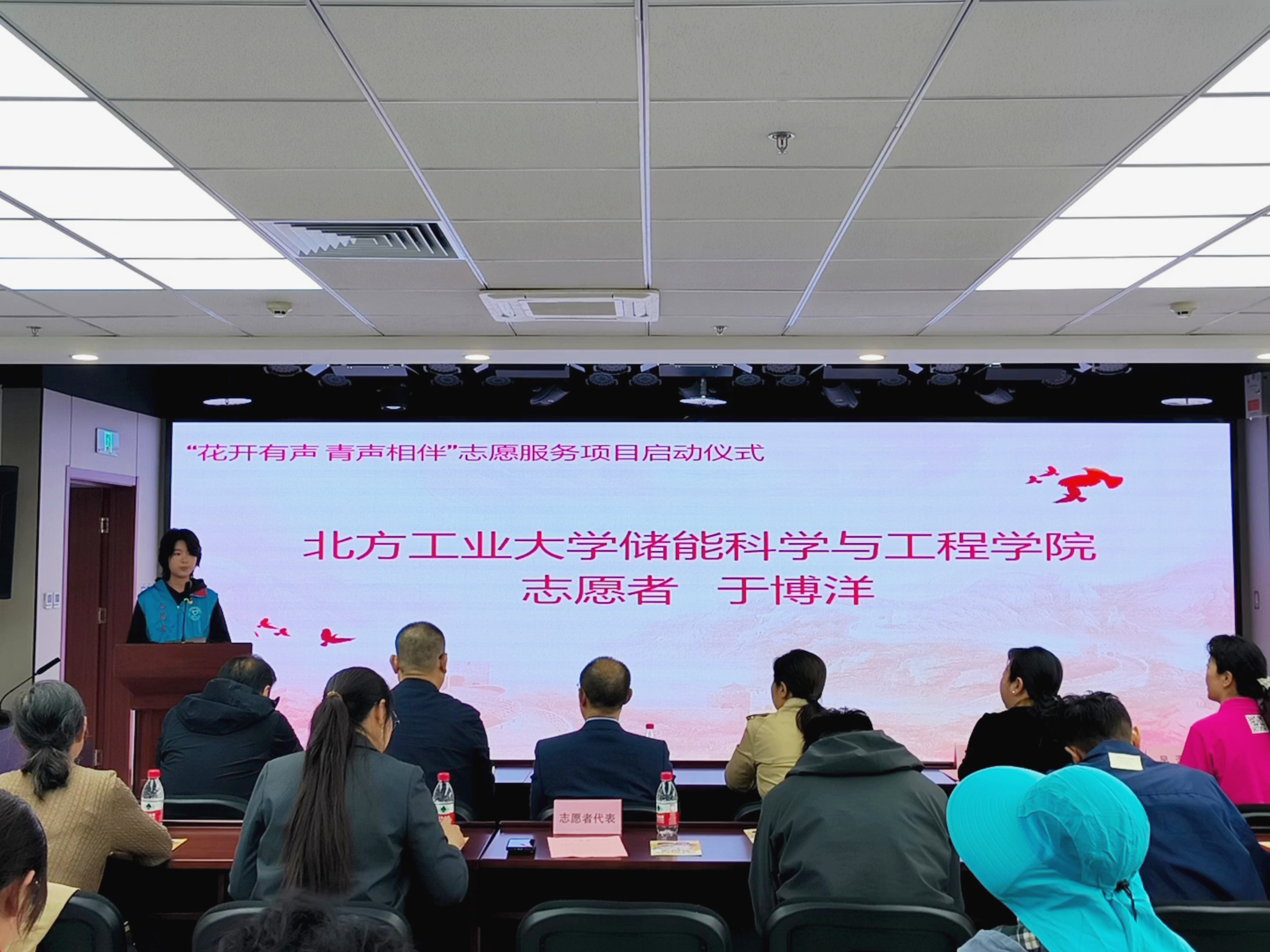 志愿者代表,储能23班学生于博洋庄严承诺:“将以专业与热忱架设心桥,用青春之声温暖听障人群。”