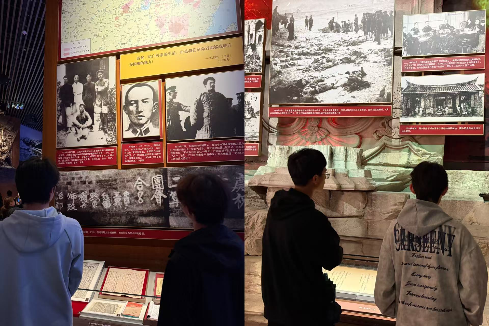 走进中国人民抗日战争纪念馆,庄重氛围将同学们带回抗战岁月。在主题展厅中,历经战火的文物、泛黄档案与历史照片,共同勾勒出中华民族共御外侮的壮丽画卷。同学们认真聆听、驻足凝思,深刻体悟革命先辈的英雄气概与必胜信念,深切认识到,中国共产党是抗日战争的中流砥柱,更被革命先辈“天下兴亡、匹夫有责”的爱国情怀与“视死如归、宁死不屈”的民族气节深深震撼。