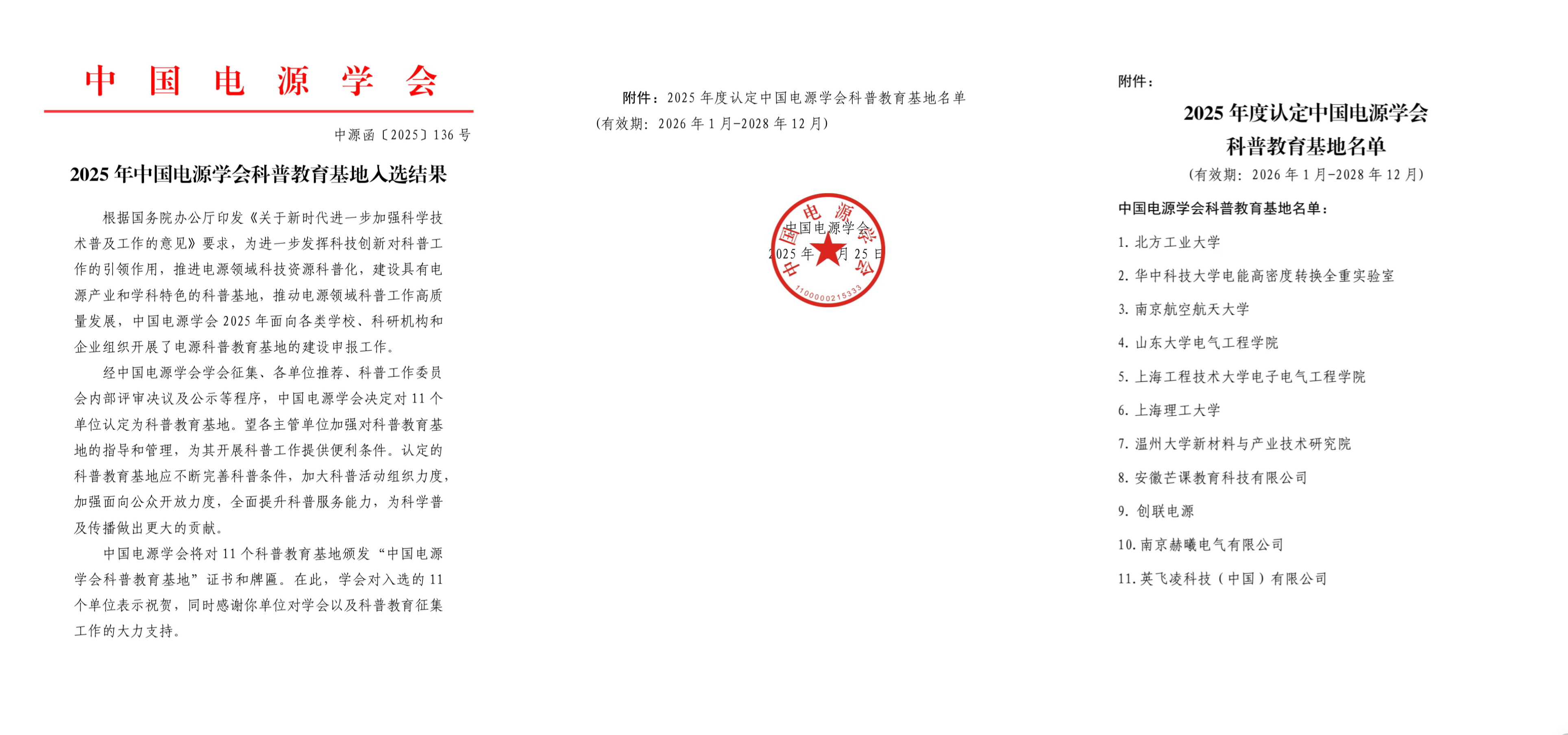 近日,中国电源学会公布2025年度科普教育基地名单,手机赚钱平台