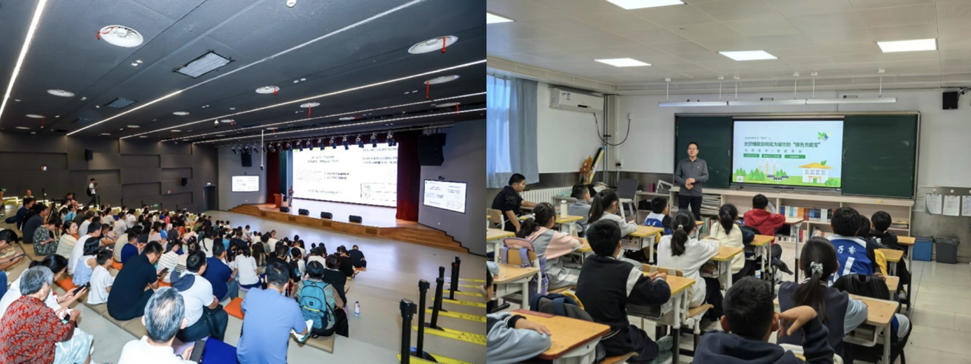 长期开展系列科普活动与基地建设,为此次申报奠定了坚实基础。2025年8月,在中国科协“追光者节”全国科普公益展合肥站活动中,学院教师作《追光者行——给地球充满绿色能量》主题讲座,向二百余名观众揭示光能转化清洁电能的科学原理,展现学校相关科研成果,获央视网、安徽卫视等媒体报道。同年11月,学院教师走进北京市回龙观中心小学,以《给北京的天空“降压”——光伏储能如何成为城市的“绿色充能宝”》为题开展专题讲座,结合城市实际生动讲解光伏储能原理与应用,突出储热技术在冬季减排中的作用,通过互动形式激发青少年对绿色能源的兴趣,取得良好科普效果。