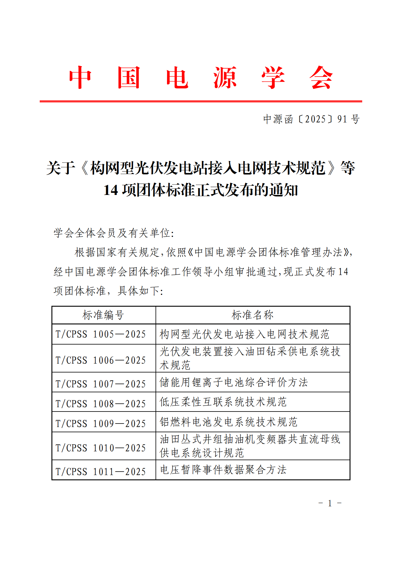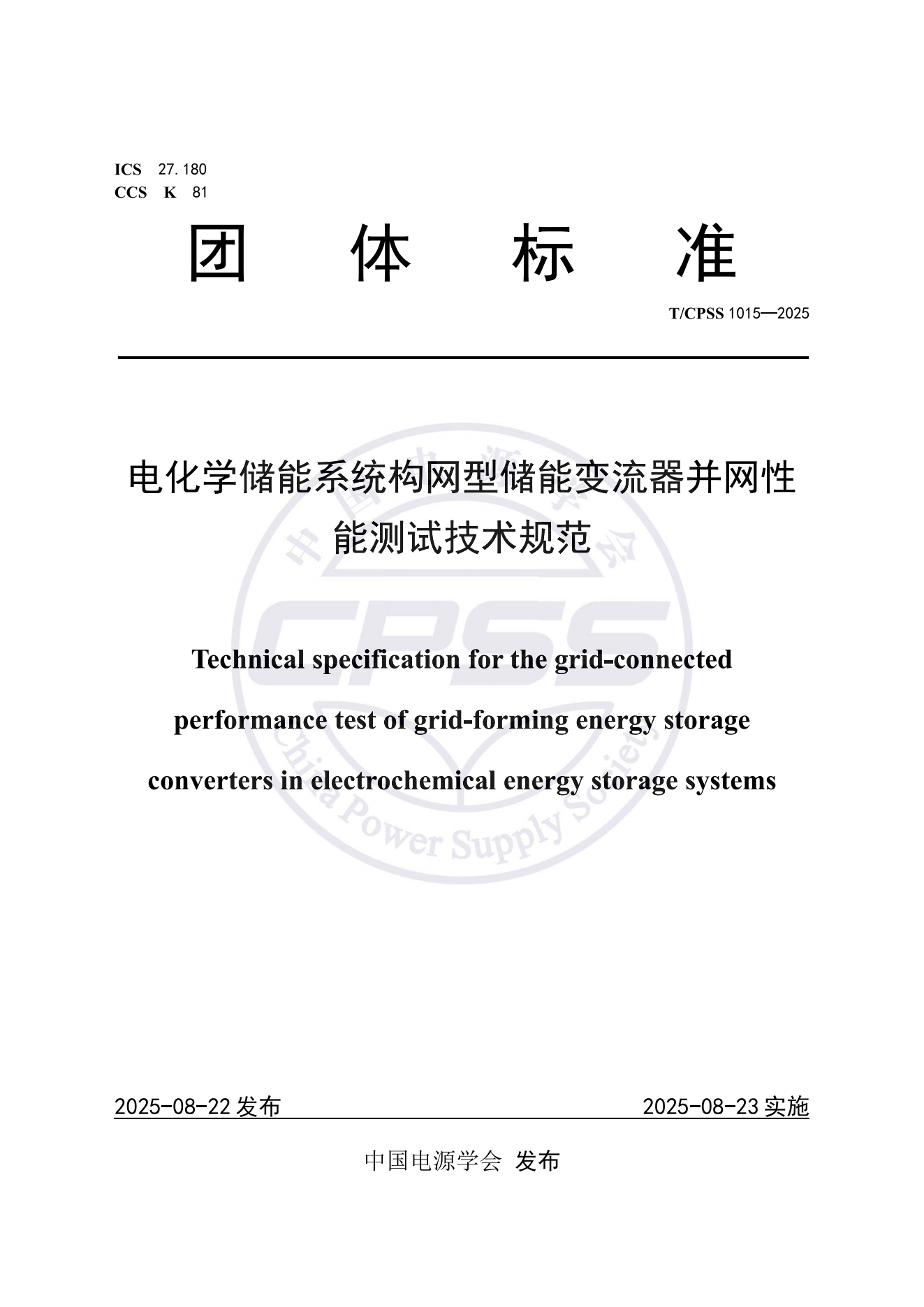 周京华教授牵头编制的团体标准《电化学储能系统构网型储能变流器并网性能测试技术规范》(T/CPSS1015—2025)经中国电源学会团体标准工作领导小组审查通过,于2025年8月22日正式发布,并于8月23日开始实施。